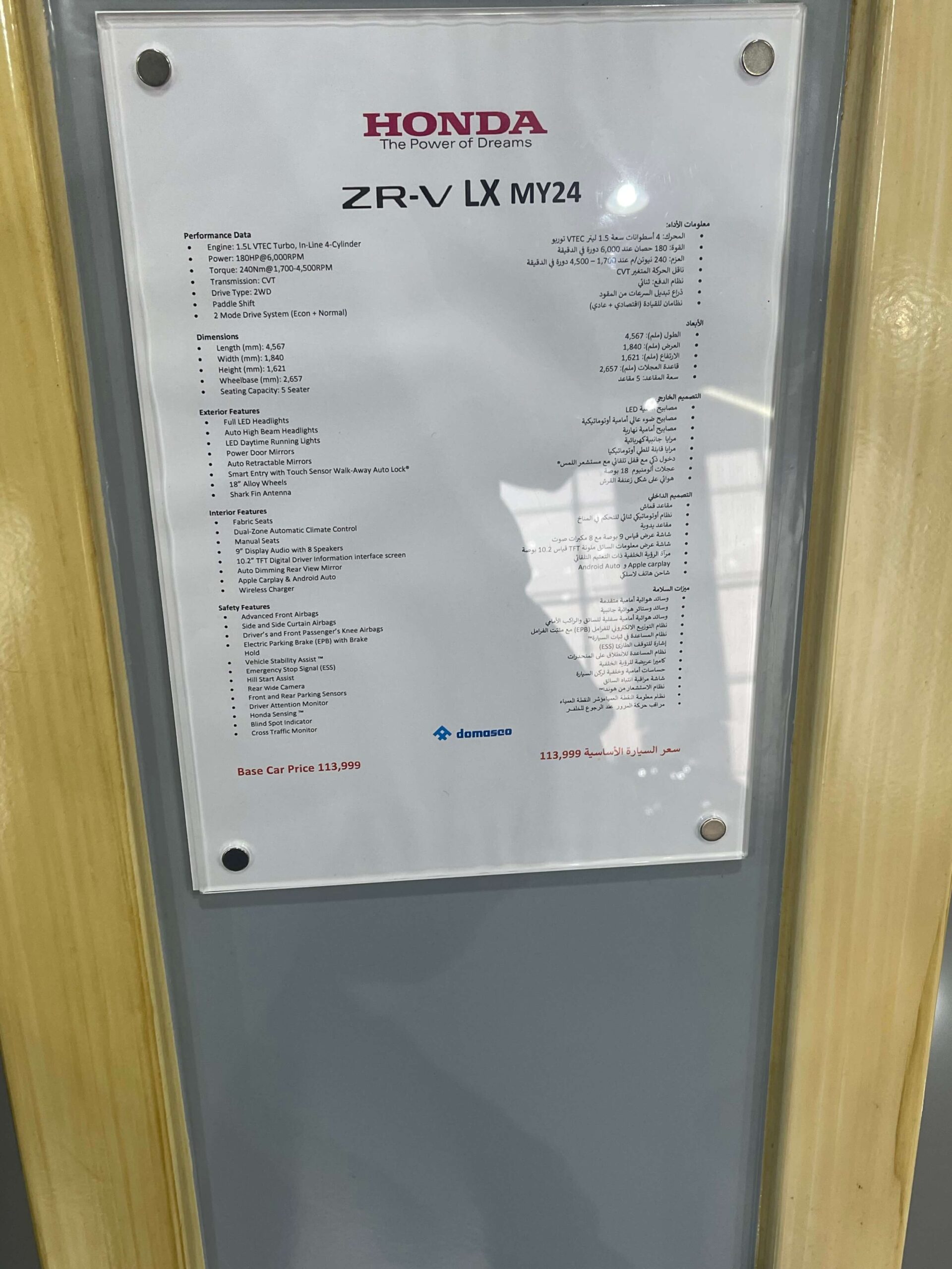 Honda ZR-V LX: A New Contender in Qatar's SUV Market ( 114000 QR )